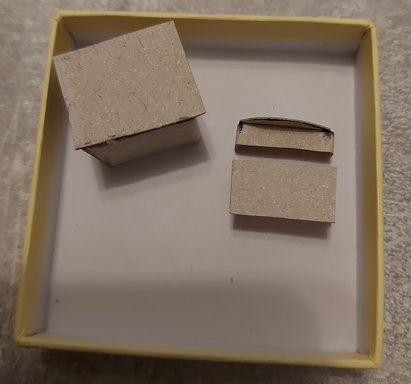 Das klingt jetzt toller als es ist. Ich habe lediglich aus Langeweile, einen kleinen Grillplatz aus Pappe und Holz, in eine kleine Schmuckbox aus Pappe gesetzt, und zwar in den Deckel.