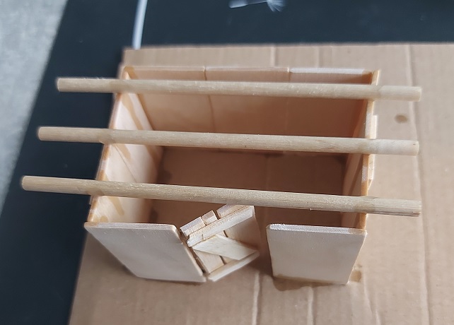 Kurzerhand drei Rundstäbe als Dachbalken genommen...